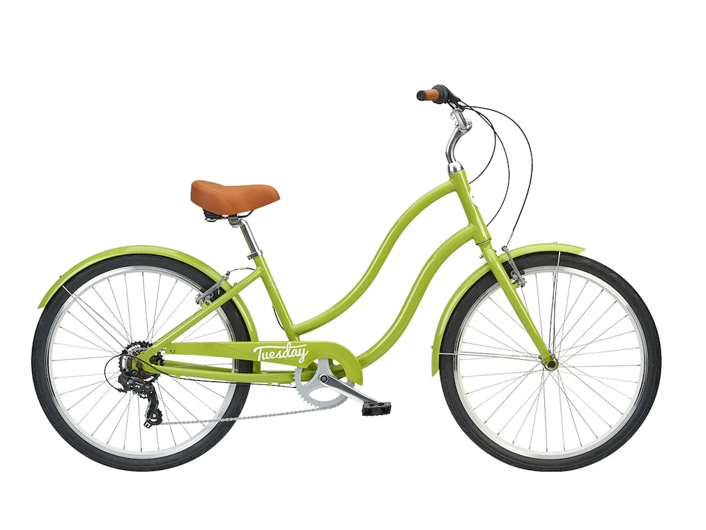 Each Tuesday is equipped with handlebar grips that mold to your hand and a wide cruiser saddle with springs to ease the bumps in the road.