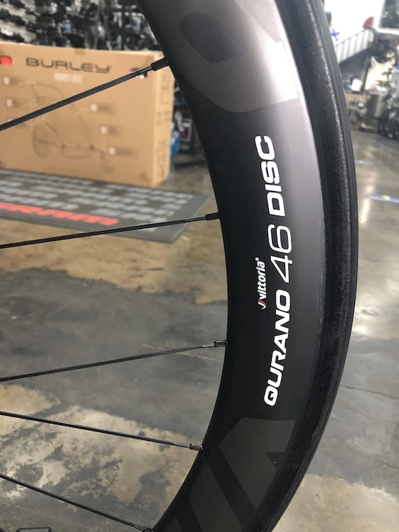 Aero and Disc wheel combined in a Full Carbon Clincher wheelset: that’s the Qurano 46C Disc. It’s built on 46mm high asymmetric rims front and rear with 24 double crossed spokes. Assembled with the new Vittoria Road Disc hubs with SwitchIT 2 freewheel system and 12/100mm front through axle, Centerlock®(convertible to 6-bolt) disc mount. Compatible with SRAM, Campagnolo or Shimano cassette.